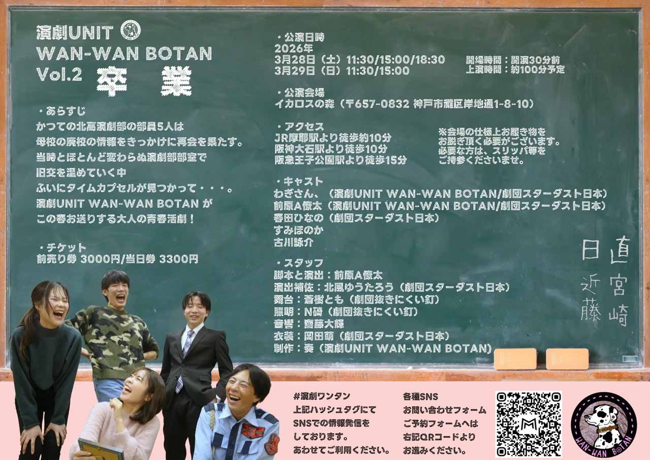 | 2026年3月29日(日) 演劇UNIT WAN-WAN BOTAN VOL.2「卒業」 | ||