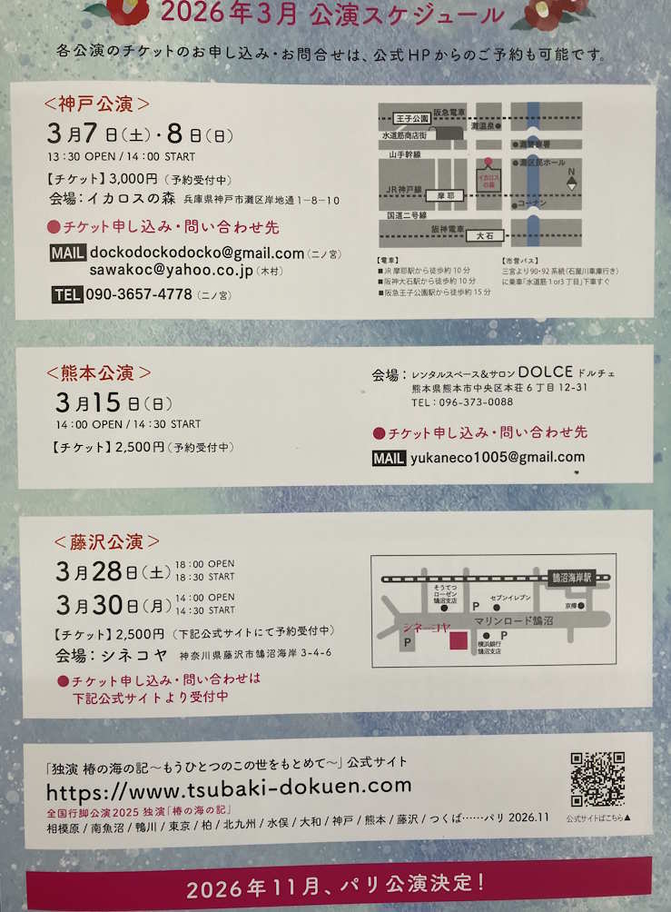| 2026年3月8日(日) 「独演 椿の海の記 第五章」 | ||